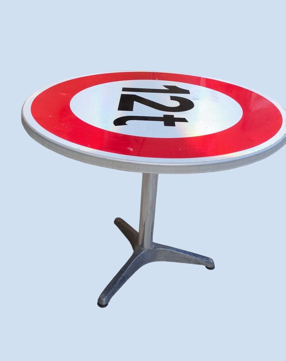 Table réalisée à partir d’un panneau de signalisation récupéré